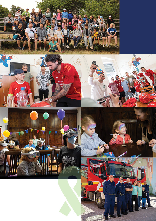 Élményműhelyek, táborok, ünnepi programok és közösségi események valósultak meg, mert a hosszú kezelések alatt a lelki teher csökkentése, a hétköznapi és ünnepi örömök megélése a gyógyulás fontos része. 2025-ben is kiemelt szerepet kaptak az élmény- és közösségi programok: gyereknapok, ünnepi ajándékosztások, élményműhelyek és terápiás foglalkozások segítették a gyermekeket abban, hogy a kórházi időszak ne csak a kezelésekről szóljon.